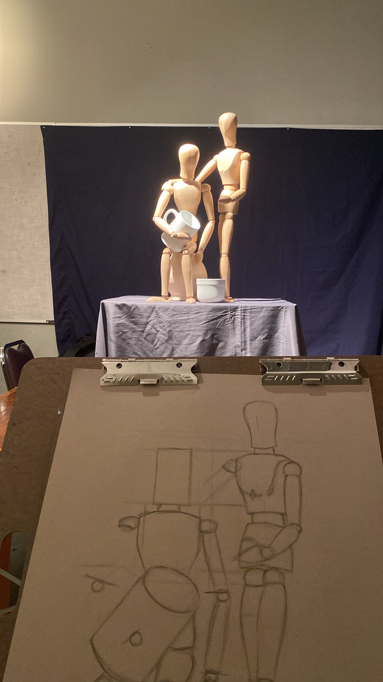 ATELIER DRAWINGS - CHARCOAL AND SANGUINE PENCILS ON PAPER