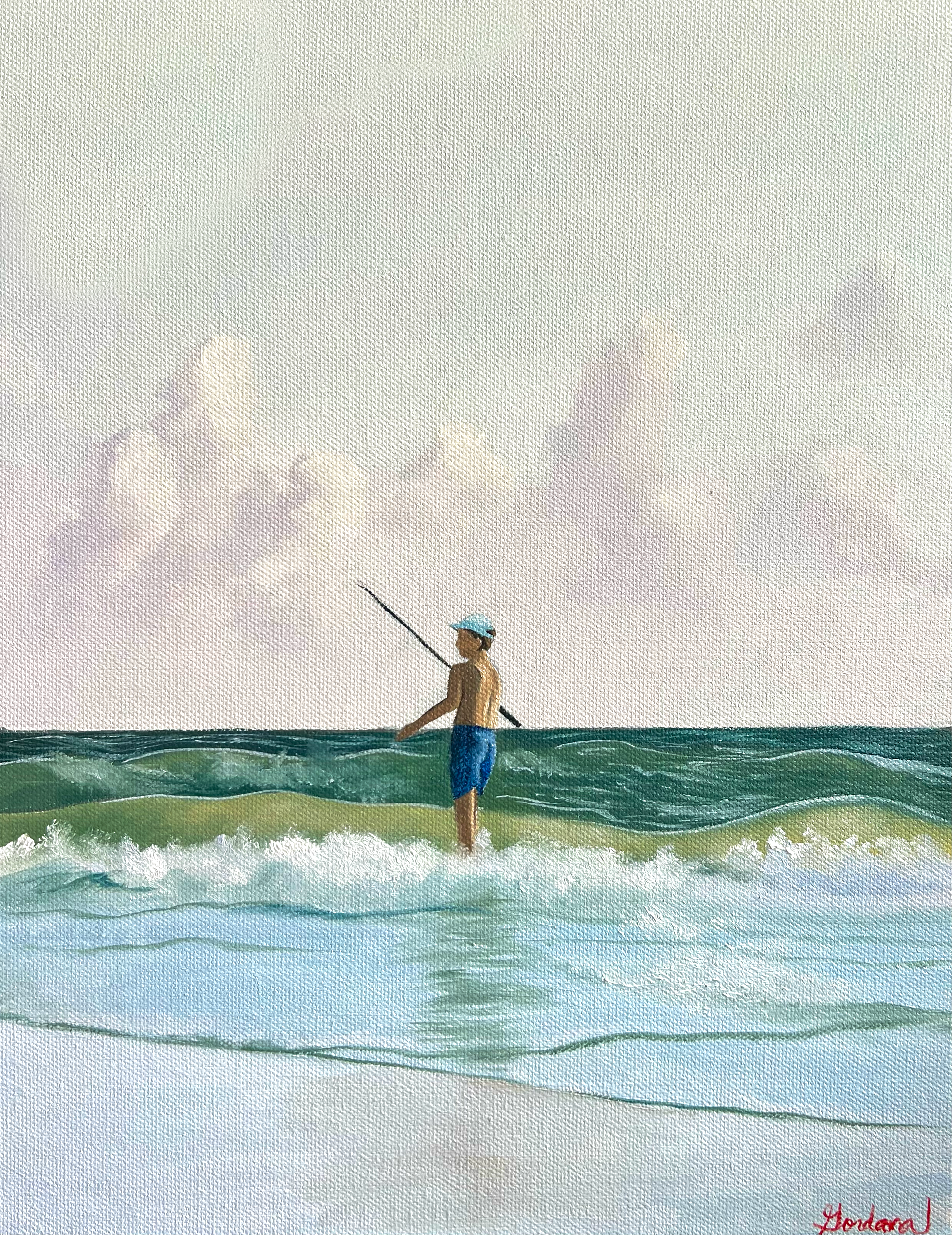 6) Misko u Ribolov (Misko Fishing), 11 x 14 in, oil on canvas, 2024