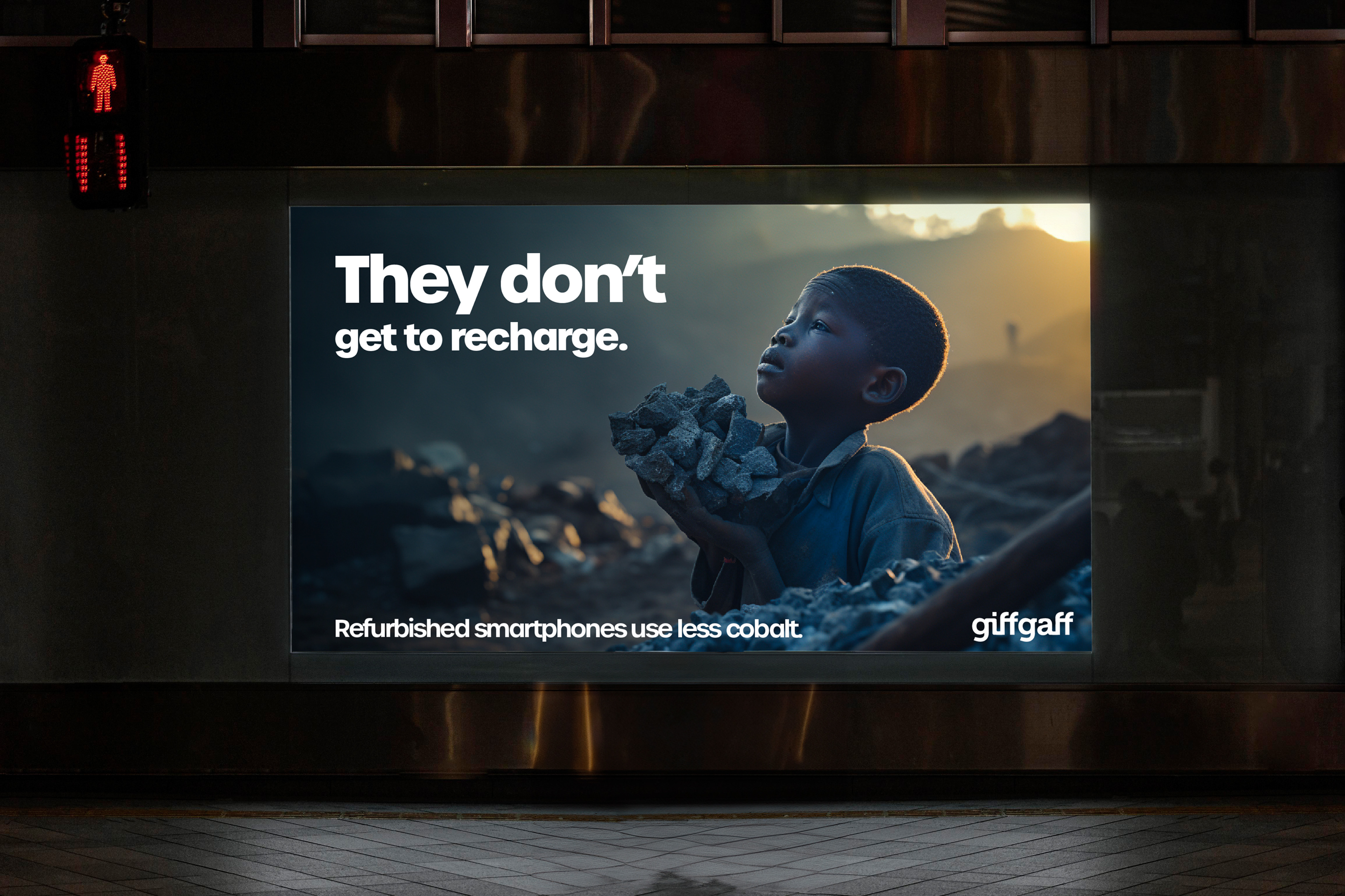 This British refurbished phone company wants consumers to be on the right side of history. So to push consumers to switch to refurbished devices, Giffgaff will not-so-subtly show them the true cost of what it takes to get the cobalt needed to build a new smartphone.
